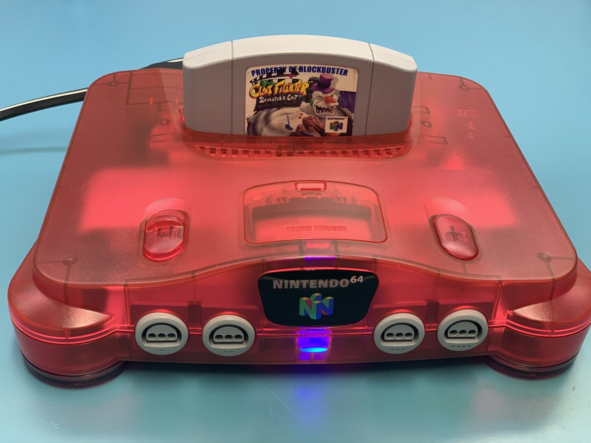 #UltraHDMI kit in existence installed in this customers Watermelon N64! Recapped the PSU and mainboard, printed@collingall's Region Free Mod and#NoCutMod in transparent red and installed a slow color changing Power LED. Testing with my favorite game! J/K this game sux! lolpic.twitter.com/V7raXXv9uF
