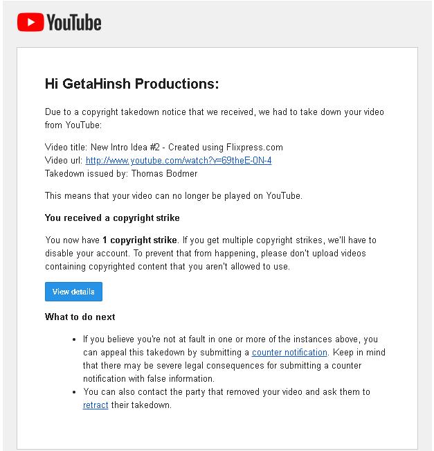 @TeamYouTube Please help me understand how content I created and paid for which is 100% mine was striked!