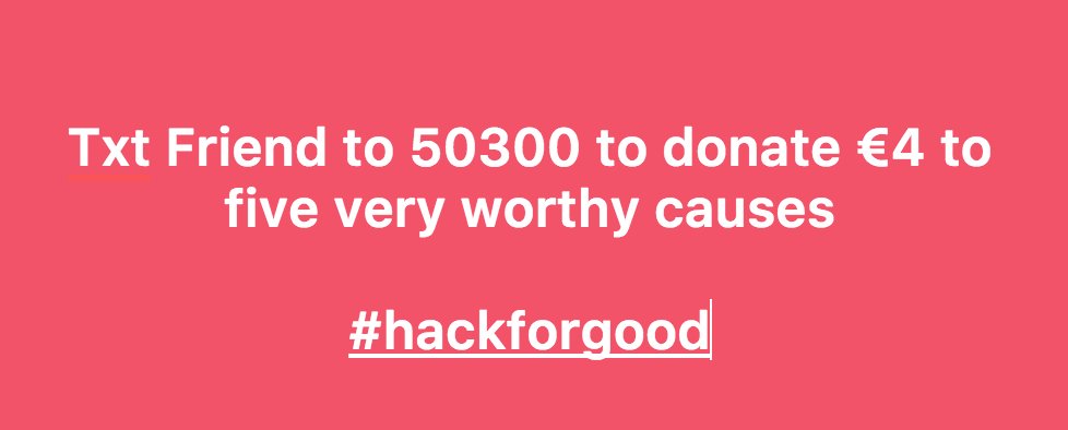 #hackforgood Startups! Txt your support and I'll spend a half day in Cork or Dublin with one of you sorting out whatever I can sort for you!pic.twitter.com/du7R4k3zbd