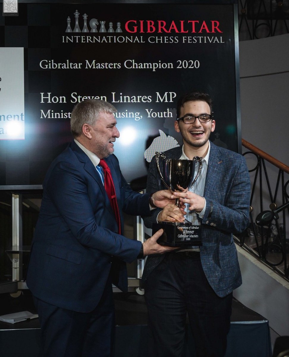 wins the @GibraltarChess Masters 2020. He scored an unbeaten 7.5/10 alongside six others! In the four player playoff, he beat Esipenko first and then Wang Hao, to seal the biggest title of his career and pocket £30,000.#GibChesspic.twitter.com/RiZLh9hOv6