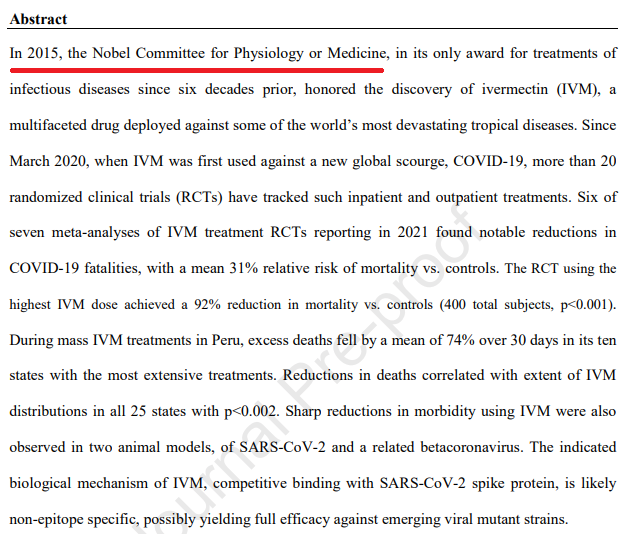 3/n At the outset, I find the introduction and title very odd. Ivermectin has been honored by the Nobel committee for an ~entirely different purpose~ Other treatments that received Nobels include: - lobotomy - giving people malariapic.twitter.com/fBW4BWfk5P