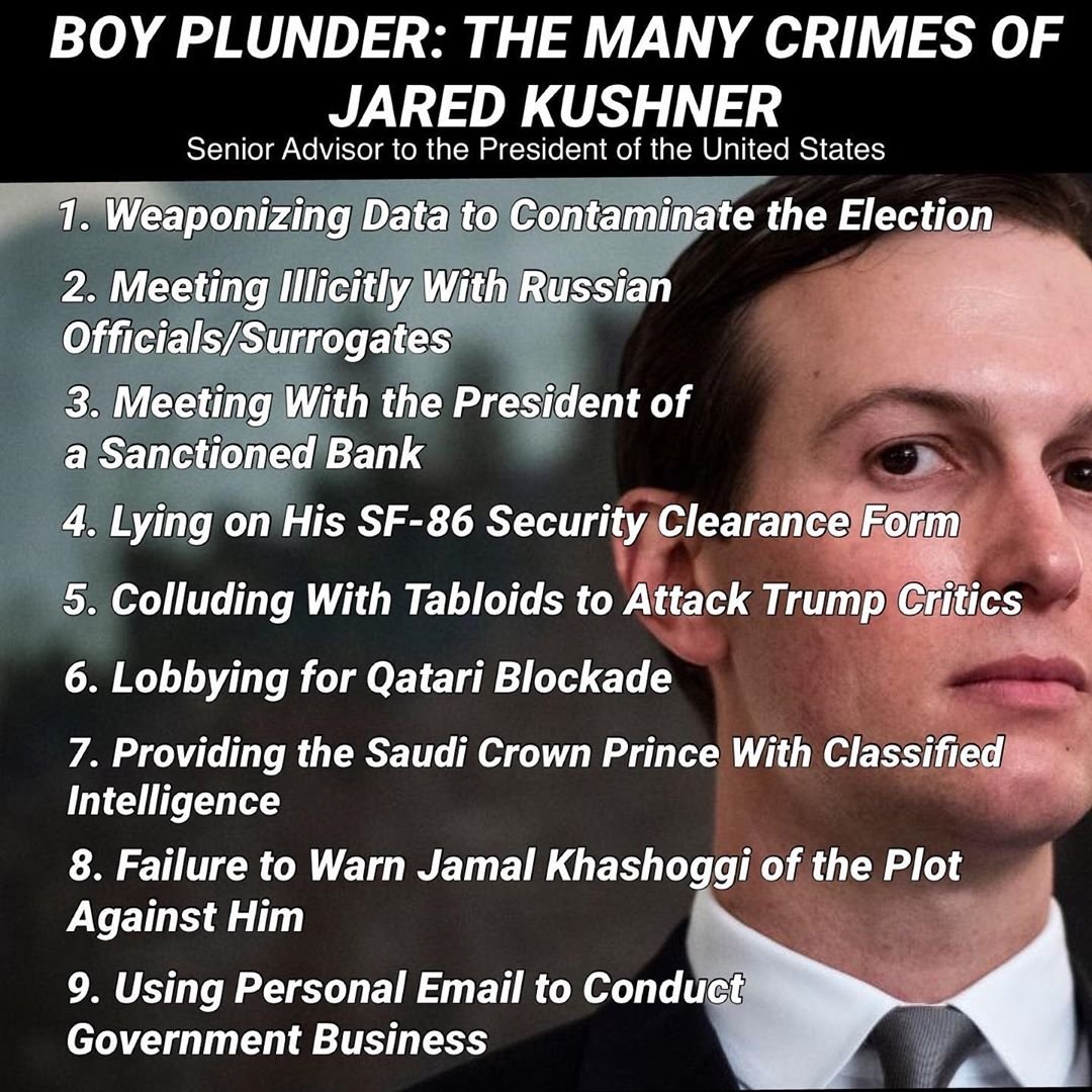 He and his family are grifters. If Hunter Biden needed to testify Kushner should have, as well. $1.4B in debt magically disappeared.https://www.nytimes.com/2018/08/03/nyregion/kushners-building-fifth-avenue-brookfield-lease.html …