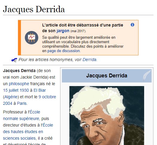 Lol, French Wikipedia warns that the article on Derrida should be cleaned of Jargon, "good luck with that chief" really is the only comment possible :) cc: