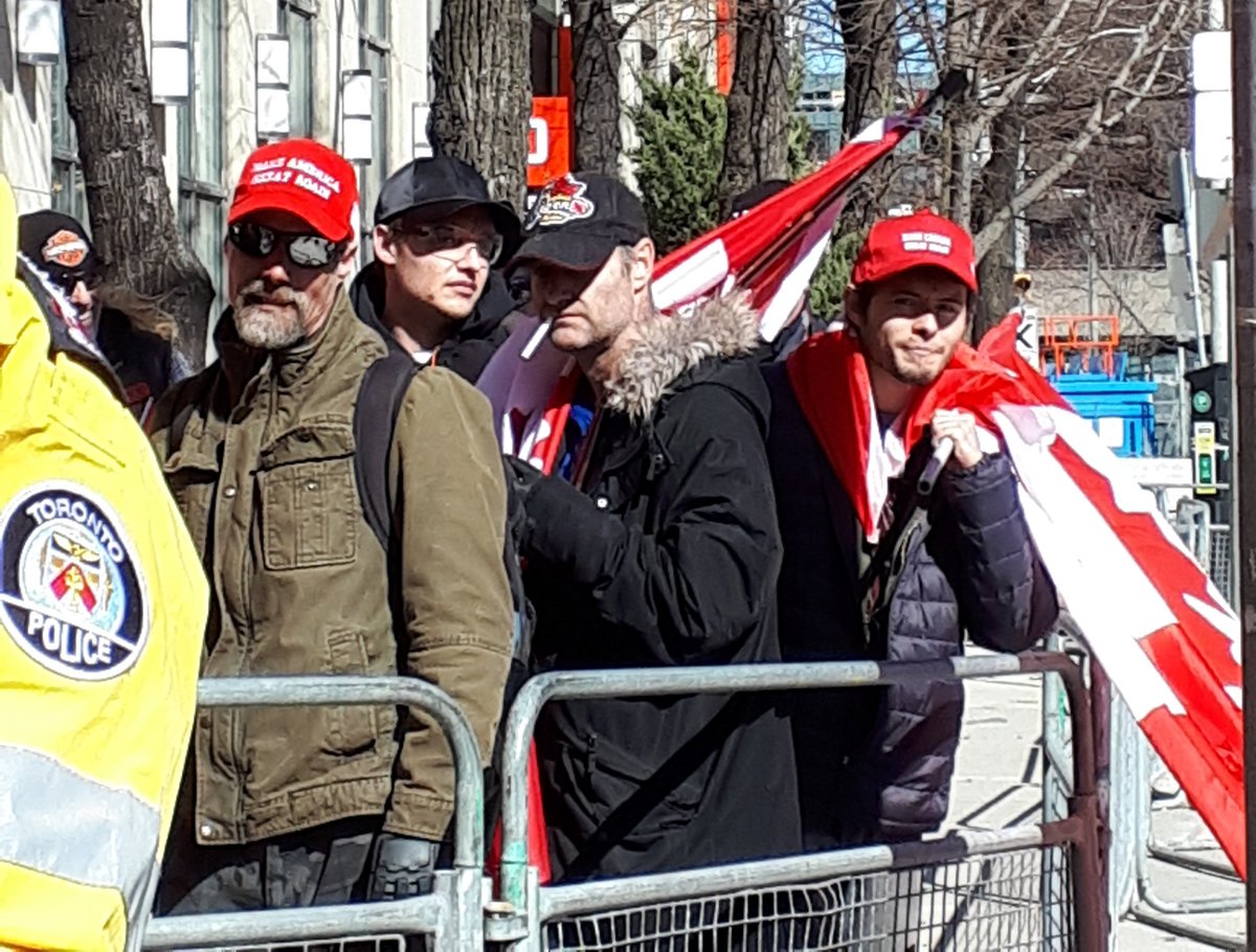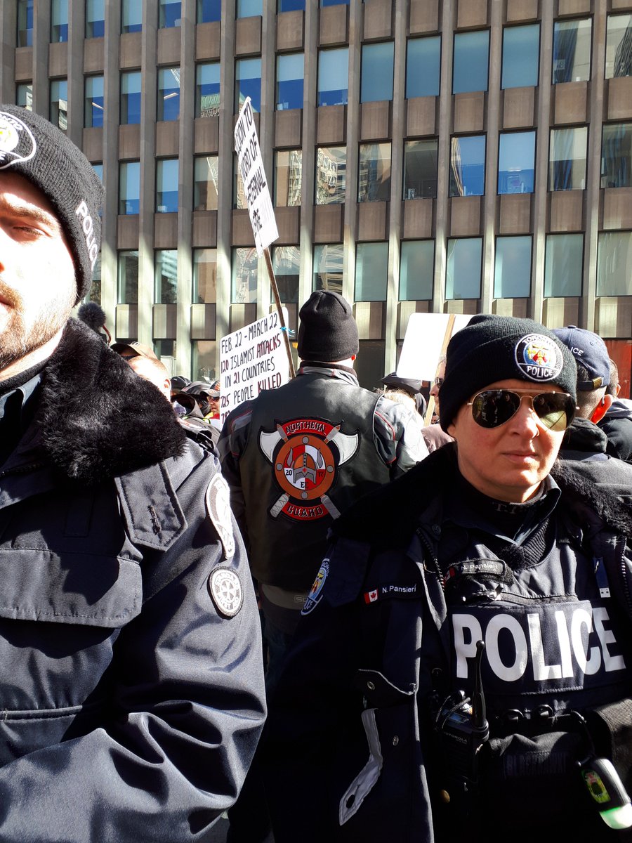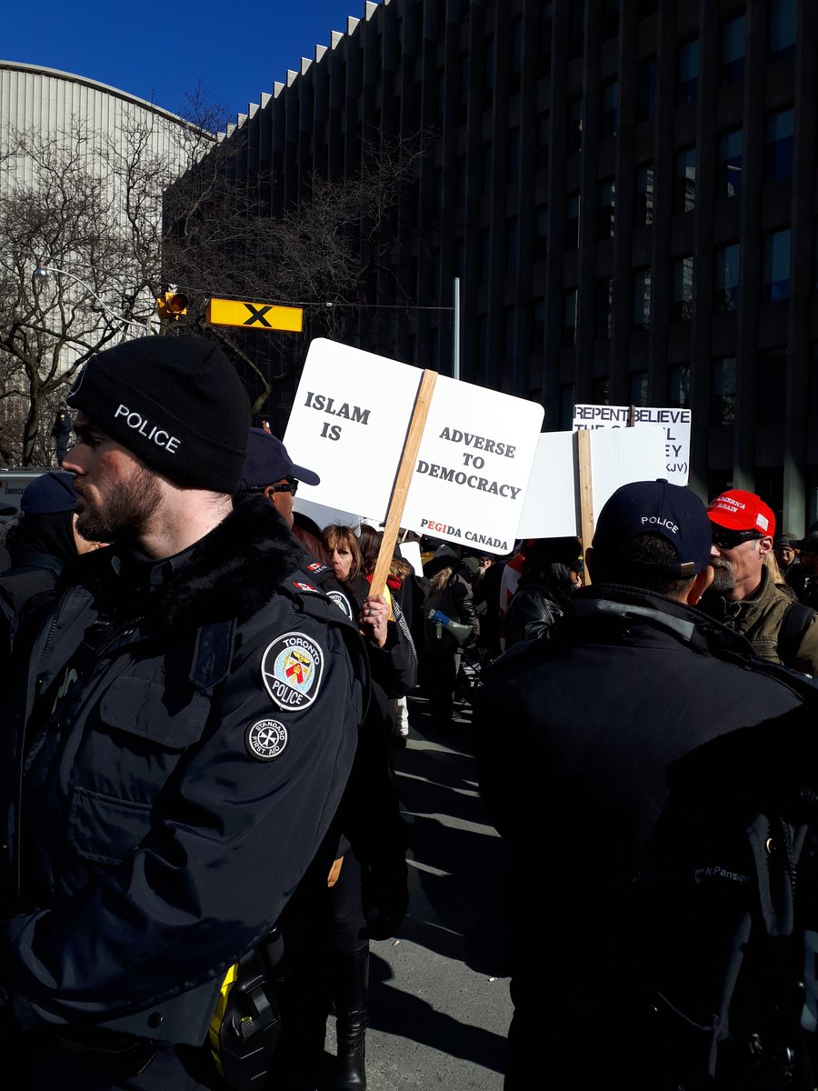 yesterday's counter demo in #toronto was brutally demoralizing for the far-right scum that pegida scraped together. they couldn't march in any direction w/o getting blocked by community members - faith groups, unions, anarchists & socialists, neighbours fed up with this shit.