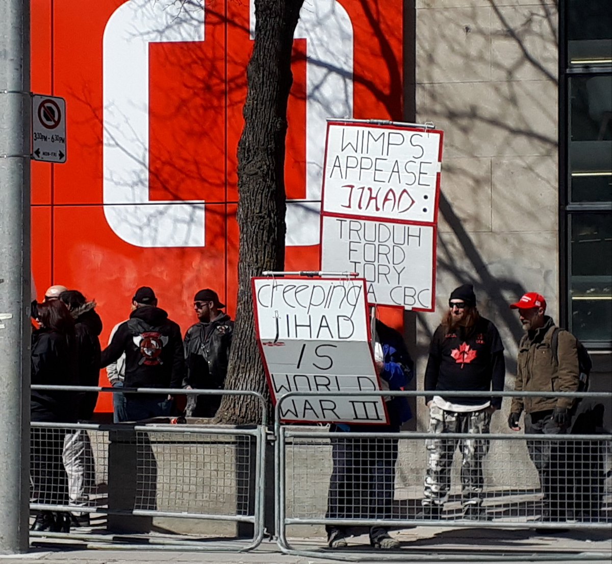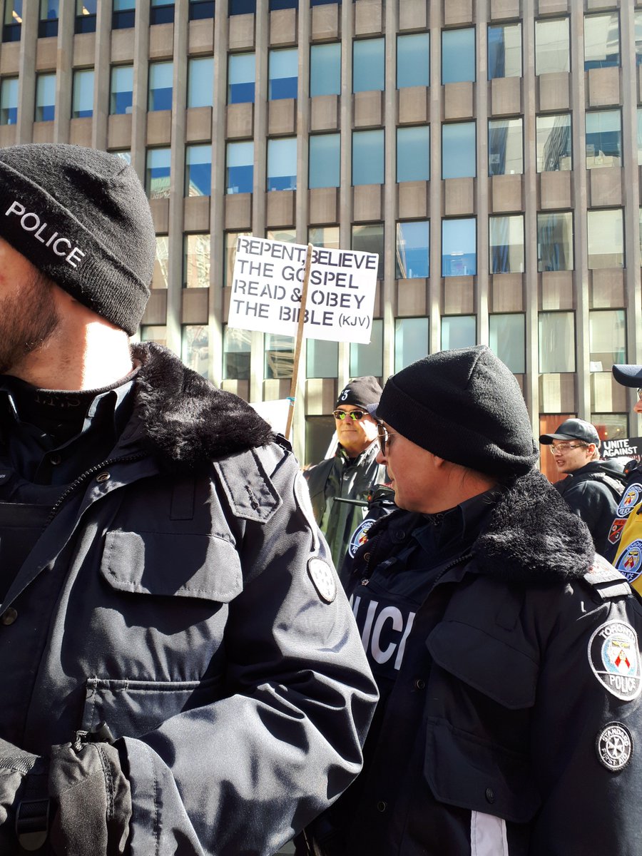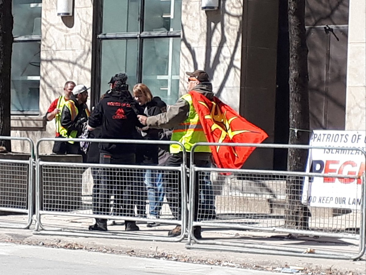 yesterday's counter demo in #toronto was brutally demoralizing for the far-right scum that pegida scraped together. they couldn't march in any direction w/o getting blocked by community members - faith groups, unions, anarchists & socialists, neighbours fed up with this shit.