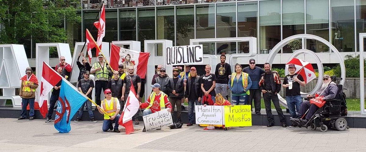 Nouns of Odin & NoWank Boys showed up for the #YellowVestsCanada rally in Hamilton today. they attacked counter-protesters, including one person who was forcibly unmasked & had their glasses broken. YV members were using FB yesterday to post threats to anti-fascists. @VestsCanadapic.twitter.com/8GmnReObwu