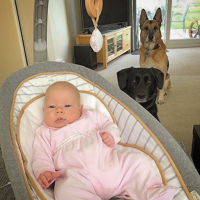 Holly with her guard dogs Amos and Poppy