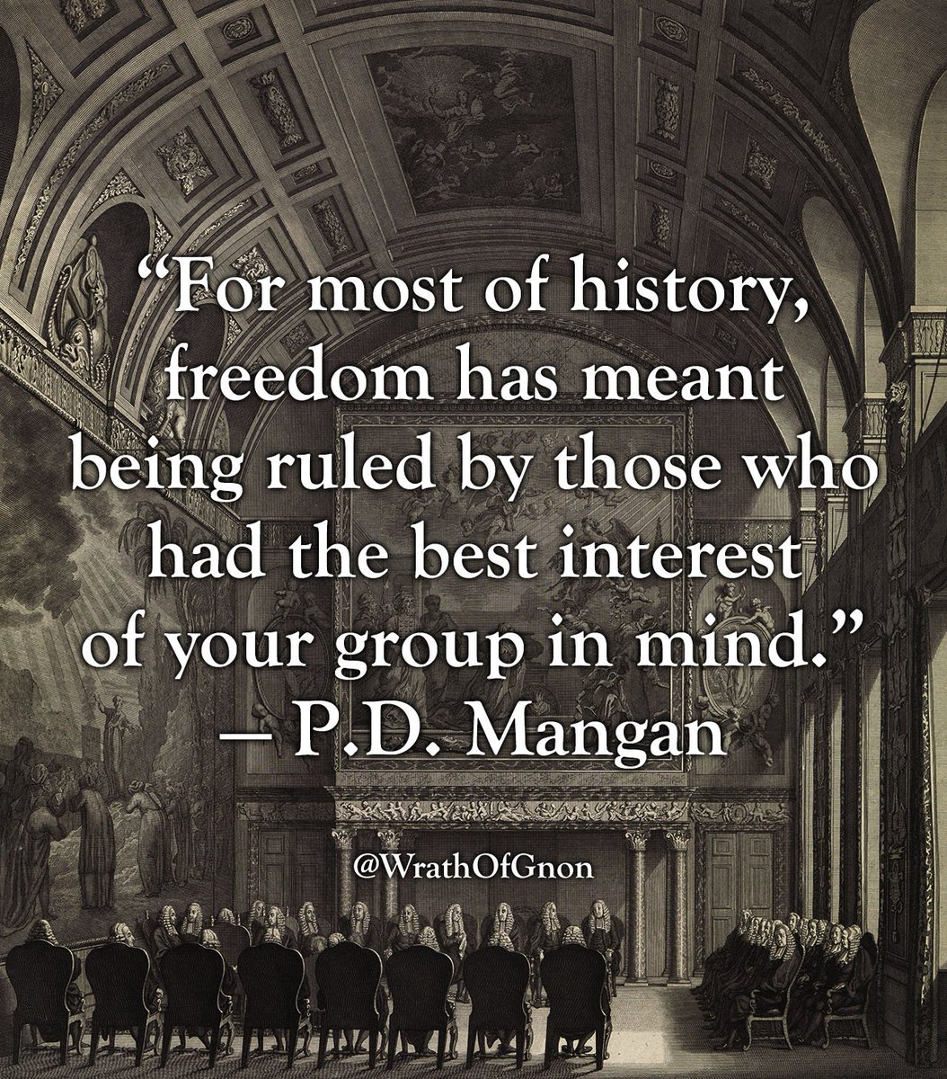 “For most of history freedom meant being ruled by those who had the best interest of your group in mind.” @Mangan150 pic.twitter.com/qv4L2saVVT