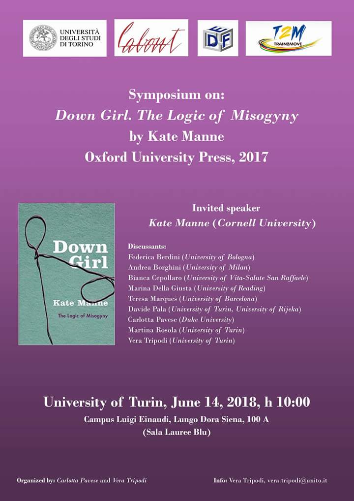 Symposium on "Down Girl. The logic of Misogyny" by Kate Manne @kate_manne June 14, 2018, University of Turin. Organized by Carlotta Pavese and Vera Tripodi
