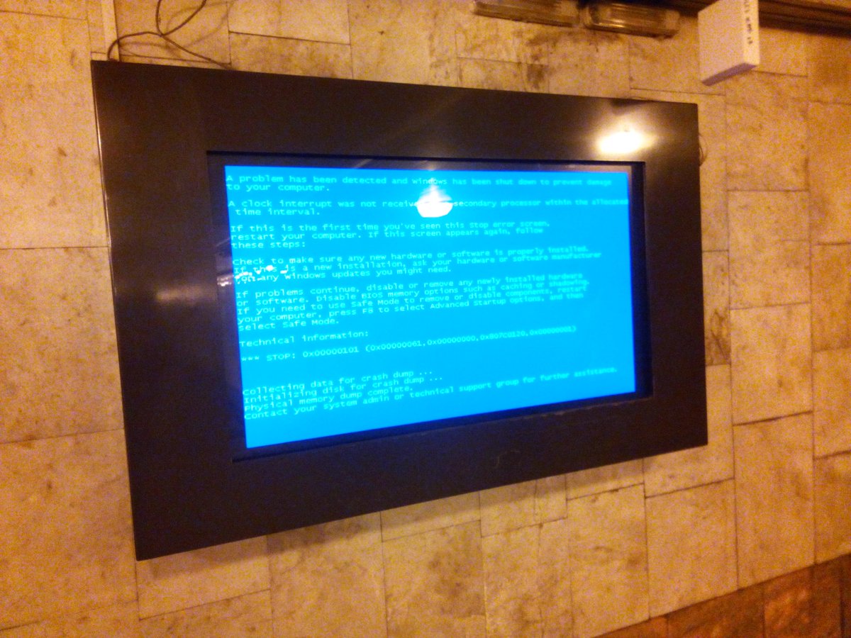 #Windows Windows, на котором работает общественный туалет в центре, завис синим экраном смерти. Если заперт в сортире из-за этого, надо вызвать компьютерного мастера для переустановки винды.pic.twitter.com/Bq7fow6nfU
