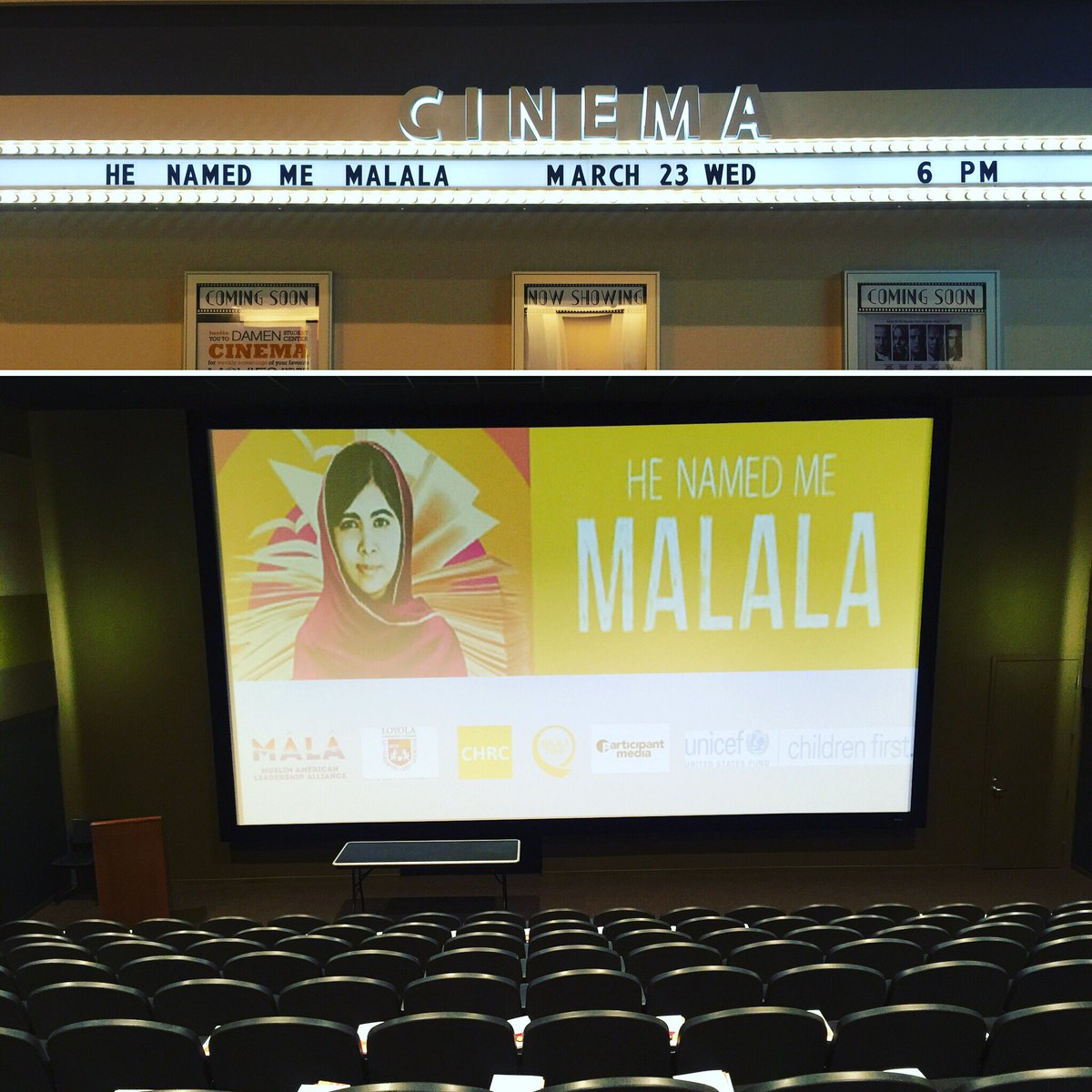 #HeNamedMeMalala is screening@CHRCLoyola with@MalalaFund@UNICEF@GirlForwardhttps://twitter.com/MALANational/status/712787613426515969 …Participant Media ekledi,