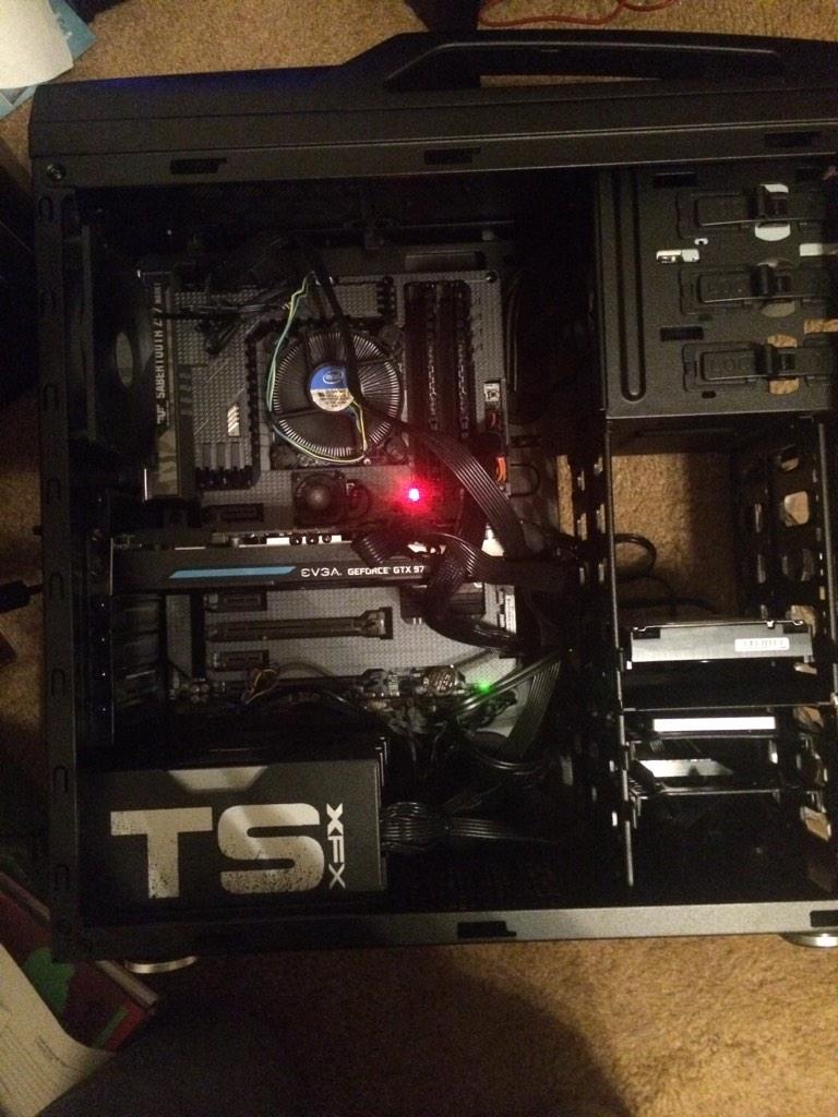 Any ideas on the red light? Graphics card starts up then turns off all other fans are on. No display on screen.pic.twitter.com/xEzAAerDEV
