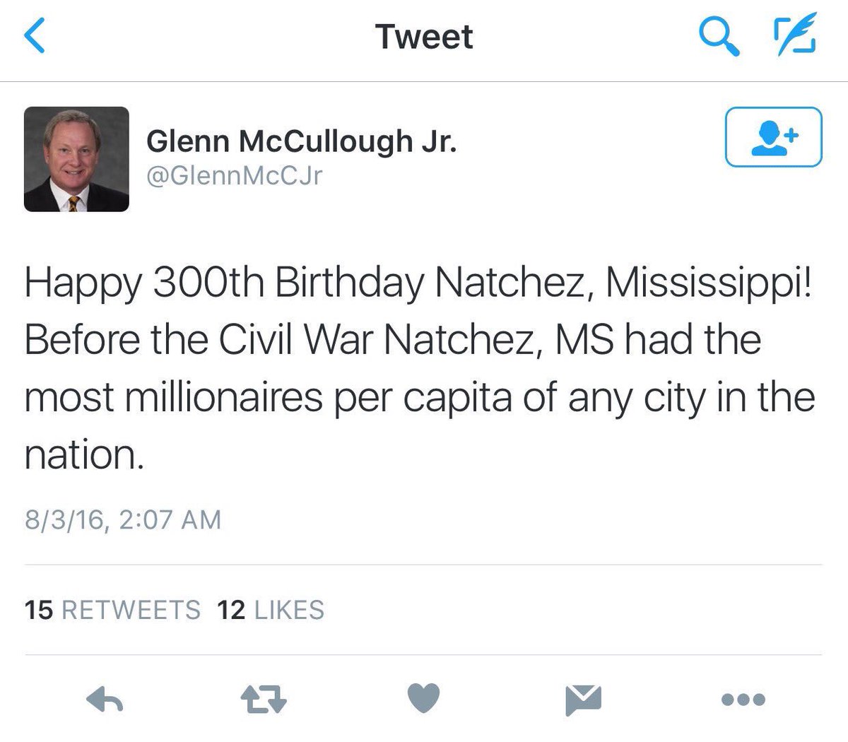 @GlennMcCJr @visitnatchez @visitms so glad you changed that post.....not very thoughtful considering how the millionaires came about