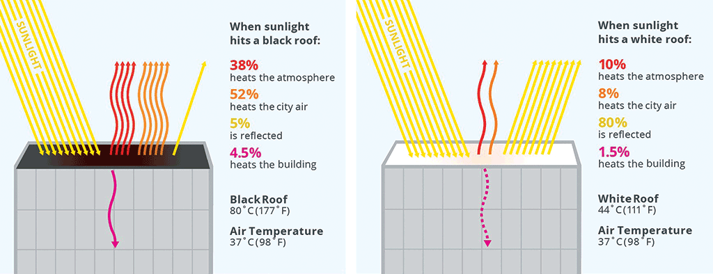 At the building scale, solar-reflective roofs [white roofs] can reduce cooling energy demand by 10–40%. Read the white paper to discover why we need cool roofs for a warming world: https://bit.ly/2TqGFxK pic.twitter.com/LATlRCA9Qi