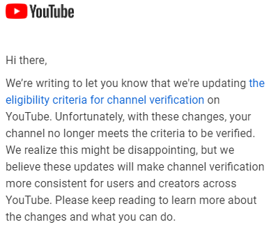 It's taken me more than 4 years to build my brand, and loosing my badge can allow others to upload my content...not just that, it will be harder for my audience to confirm my authenticity. @TeamYouTubepic.twitter.com/s2uqyIfrcG