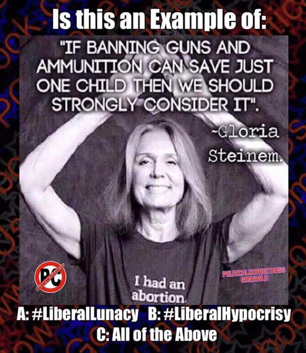 @GloriaSteinem you only want to ban guns because it's illegal to use them for abortions. -