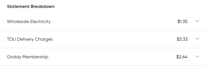 Broken down: 2.957 cents per kWh for "Wholesale Electricity". 7.2391 cents per kWh for "Electricity Delivery" (10.1961, same as other places). 5.7391 so far for Griddy membership. Great. I'm paying 50% for Griddy to rape me. Crap.pic.twitter.com/Avtez6sCoN
