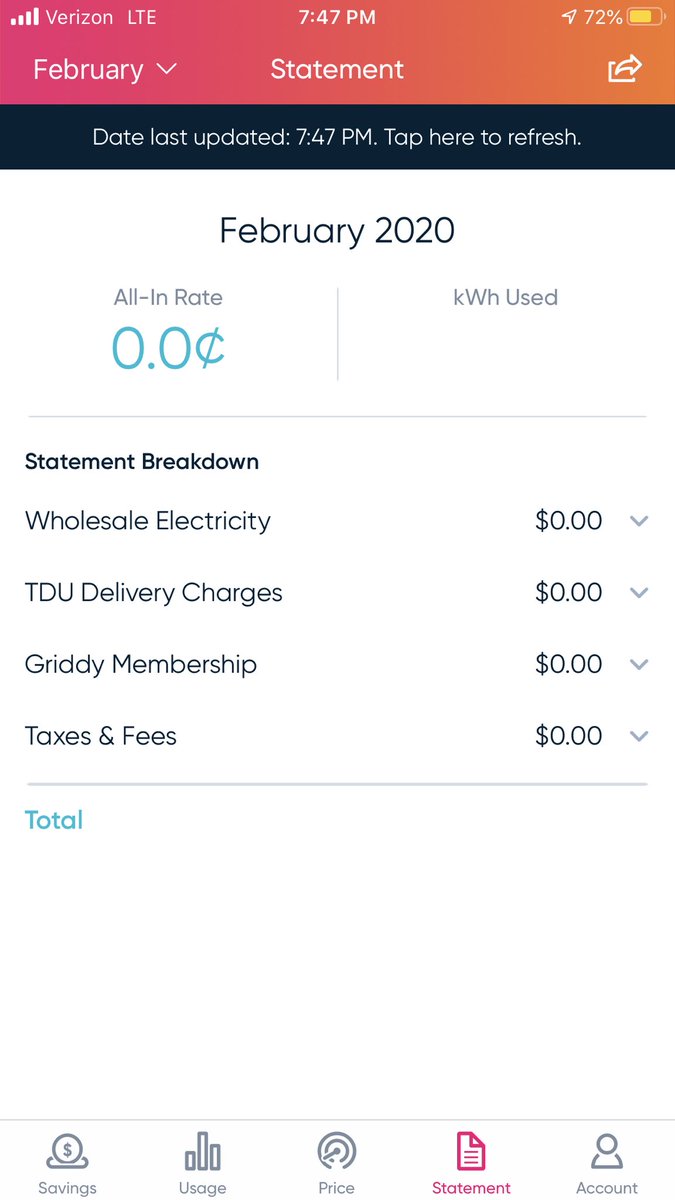 @GoGriddy why is it that I can’t seem to get your updated usage, monthly cost and transaction history? The latest information is from August 2019. Is it an app issue?pic.twitter.com/54KBPsHM1L