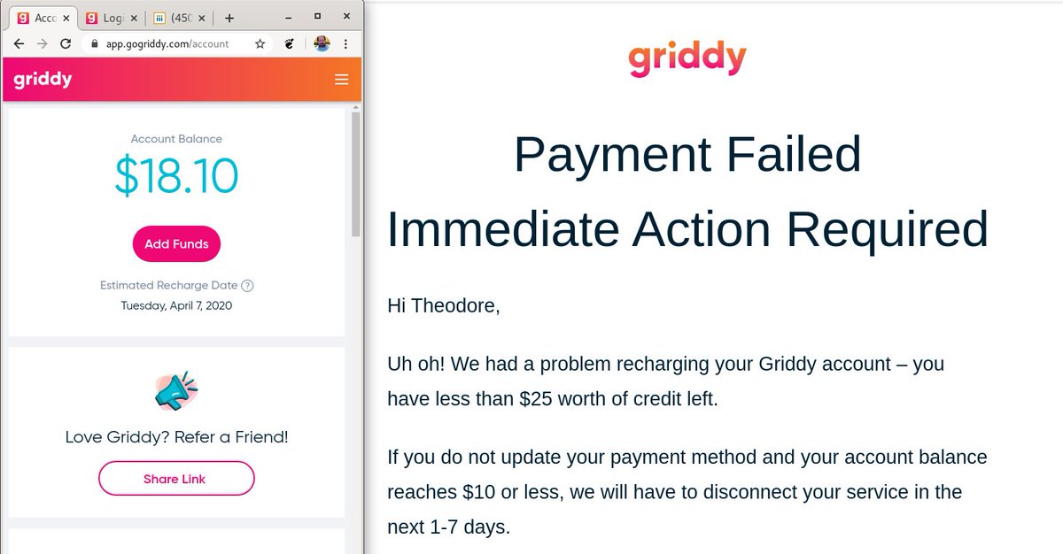 Hey @GoGriddy Why the HECK won't you give me my last $10 of service to me?!?! I am currently unemployed and working on warning people about #coronavirus full time, I didn't qualify for unemployment. I NEED THE EXTRA DAYS the $10 gives me just to find $25!! I NEED ELECTRICITY!!pic.twitter.com/zcu8SIuCKm