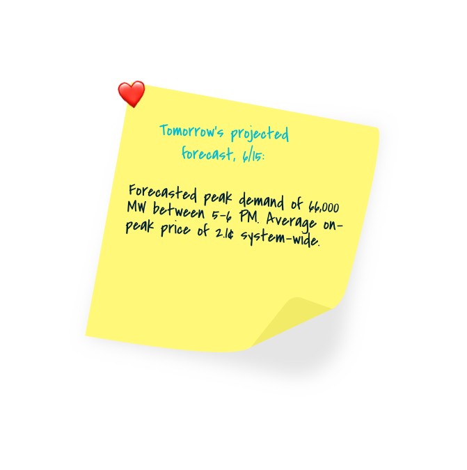 Tomorrow's projected forecast, 6/15: Fairly strong demand is expected on Monday as temperatures remain hot and humidity levels rise across the statepic.twitter.com/b9zlFNlre9