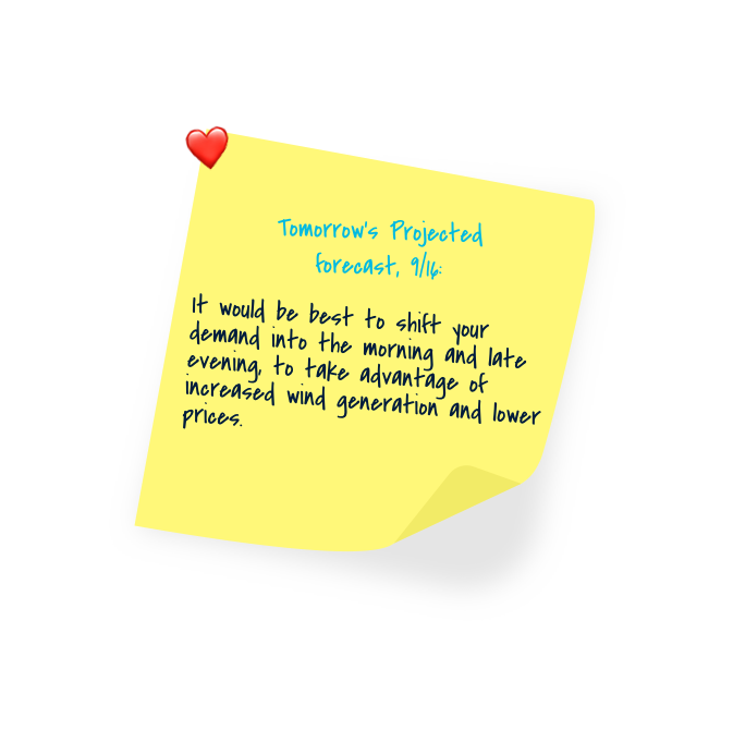 Tomorrow's projected forecast: 9/16: ERCOT is forecasting that there will again be risk of price volatility during the evening as wind generation continues to be exceptionally low. pic.twitter.com/4bSyx9fv8O