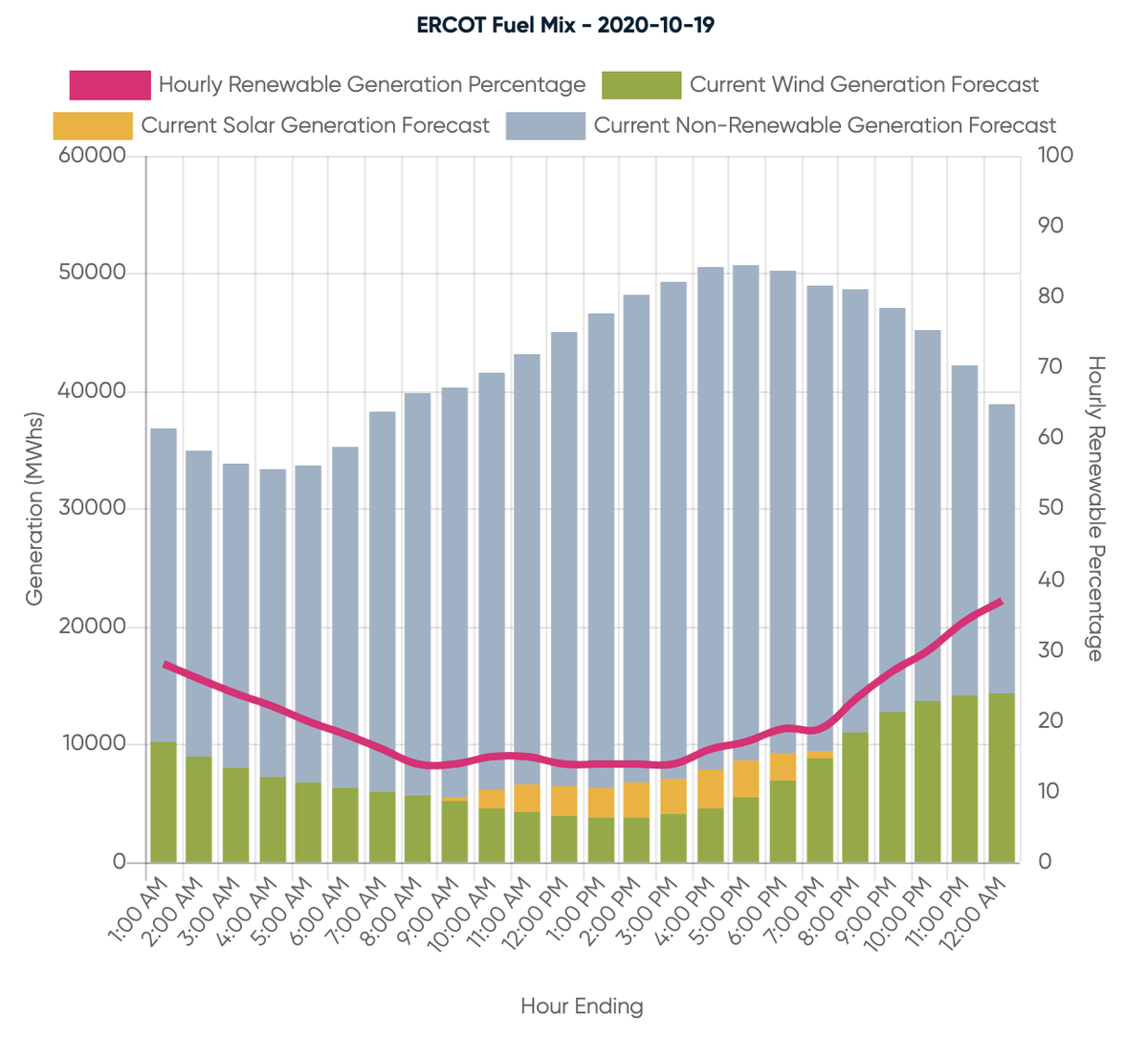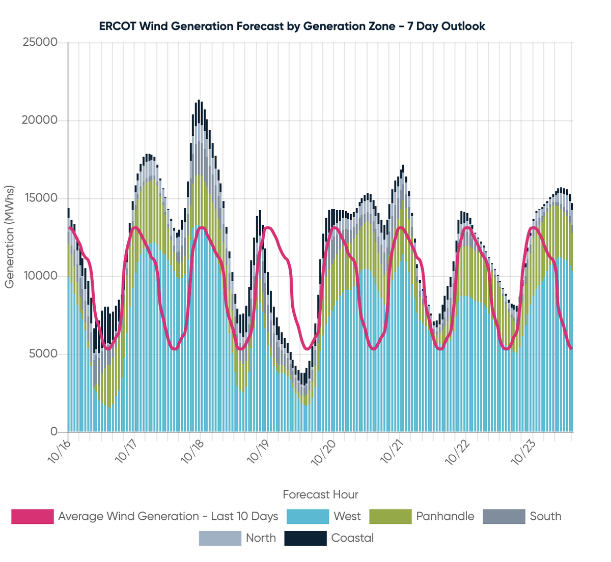 Projected forecast, 10/17, 10/18, 10/19: ERCOT’s forecast shows that demand will be moderate through the weekend with wind generation expected to be strong. Because of seasonal maintenance outages there is a slight risk of price spikes should demand not meet ERCOT’s forecast.pic.twitter.com/WukHrdEUkC