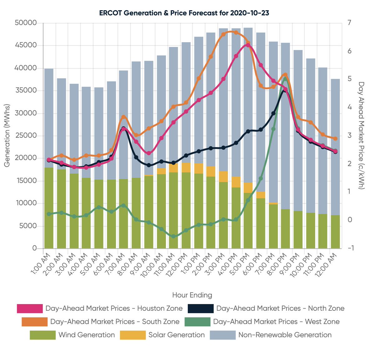 We expect that there will be some slight pricing volatility tomorrow between 3pm and 6pm. Wind generation is expected to be strong through the first part of the day tomorrow and then weaken some into the evening.