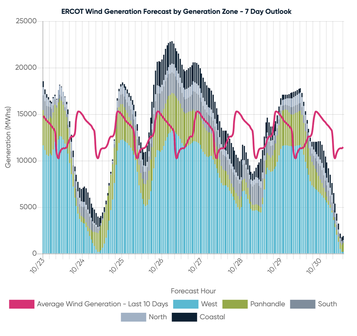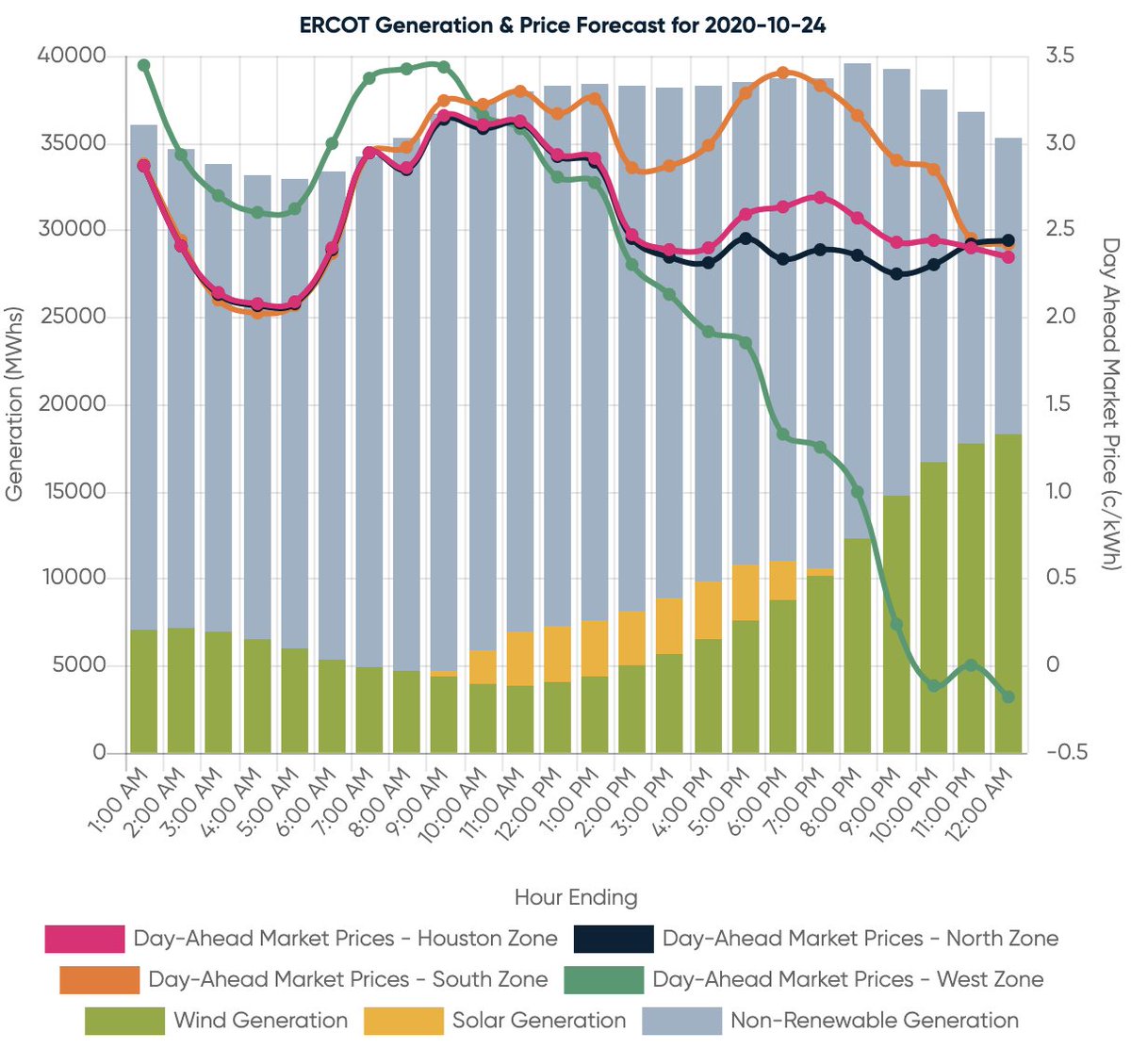Projected forecast, 10/24, 10/25, 10/26: ERCOT’s forecast shows that cooler temperatures this weekend will lower overall system demand. Pricing should be moderate averaging around 2¢ through the weekend.pic.twitter.com/i80fsZO7I5