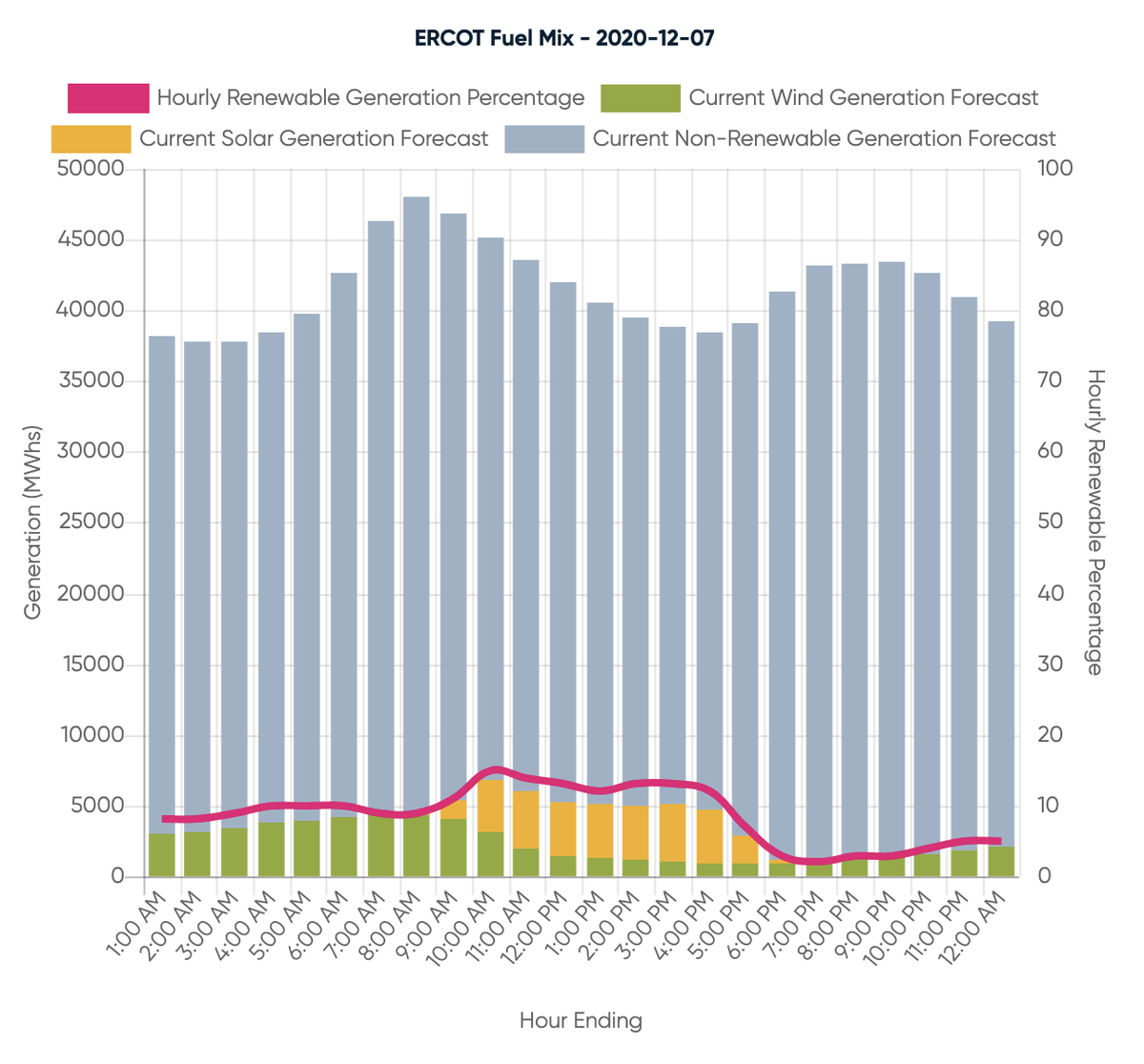 Projected forecast, 12/5, 12/6, 12/7: Mild temperatures this weekend should keep wholesale prices low. Sunday looks like the best day for strong renewable generation, in case you are looking to take advantage of the greenest and cheapest hours.pic.twitter.com/14htRdTetC