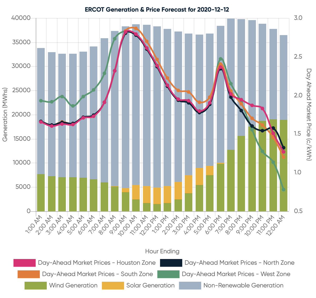 Projected forecast, 12/12, 12/13, 12/14: For the next 3 days, wind generation will be strongest on Sunday. The wind is expected to be relatively weak on Saturday and Monday mornings.pic.twitter.com/CqjcF1WzwO