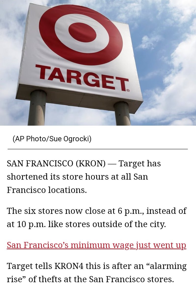 6pm instead of 10pm due to MASSIVE amount of theft. That's RACIST in 3....2....1....https://www.kron4.com/news/bay-area/why-san-francisco-targets-now-close-at-6-p-m/ …