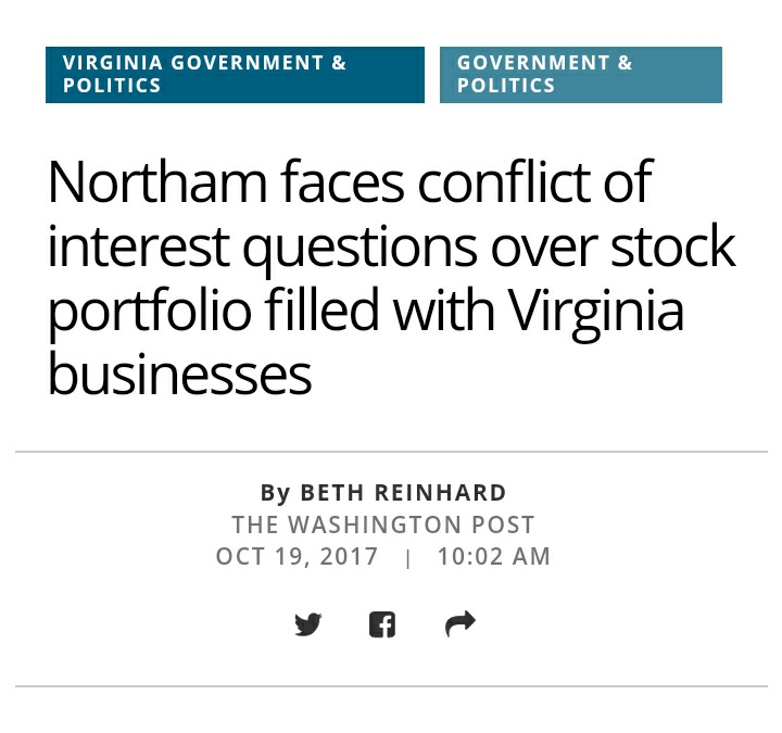 I wonder if this is going to be a trend. This article a month before Northam's election was critical about his connection to Dominion Energy. It is a valid one, but there are also a lot of conservative politicians in Virginia who are invested in Dominion.pic.twitter.com/nr2nR0ZgwZ