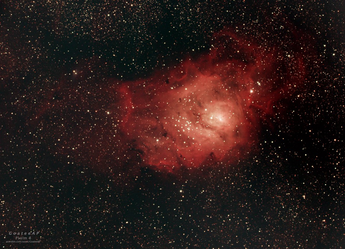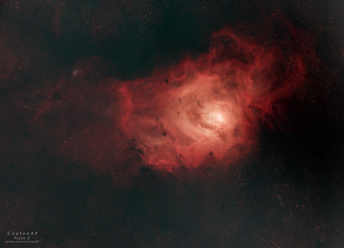 M8 Lagoon Nebula. First time out with the new scope last night! Astro-Tech AT115EDT. All details here: https://www.astrobin.com/users/GoateeAP/ StarNet++ software removes the stars to see the nebula better. Which version do you do like best?pic.twitter.com/dzYYjn7neE