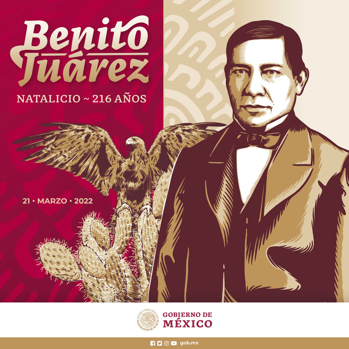 Conmemoramos el 216 aniversario del natalicio de Benito Juárez García. Hijo de padres zapotecos, dejó su hogar a los 13 años, sin hablar español, para continuar sus estudios en la capital oaxaqueña, el mejor presidente de México, símbolo de patriotismo, soberanía y justicia.pic.twitter.com/yOzAm1XZDM