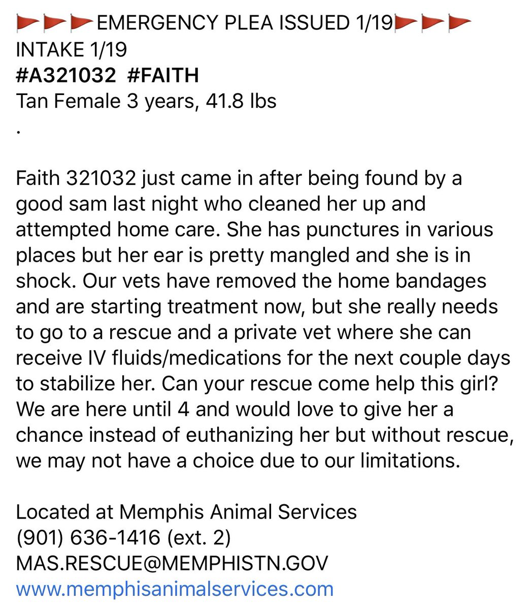 EMERGENCY PLEA Faith 3yo girl FOUND IN A HORRENDOUS STATE WITH PUNCTURE WOUNDS & IS IN SHOCK!! NEEDS IMMEDIATE VET CARE & #RESCUE She needs to be stabilised immediately! MUST EXIT TODAY 1/19 PLS#PLEDGE#A321032 PLS HELP!