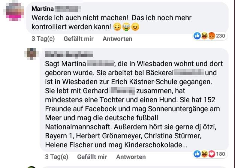 Jemanden mit personenbezogenen Daten öffentlich vorzuführen und das bei der Stimmung in sozialen Netzwerken? Sorry, aber der Zweck heiligt nicht die Mittel. Ich finde das angsteinflößend, egal ob ihre Daten auf ihrer Seite für alle einsehbar sind.