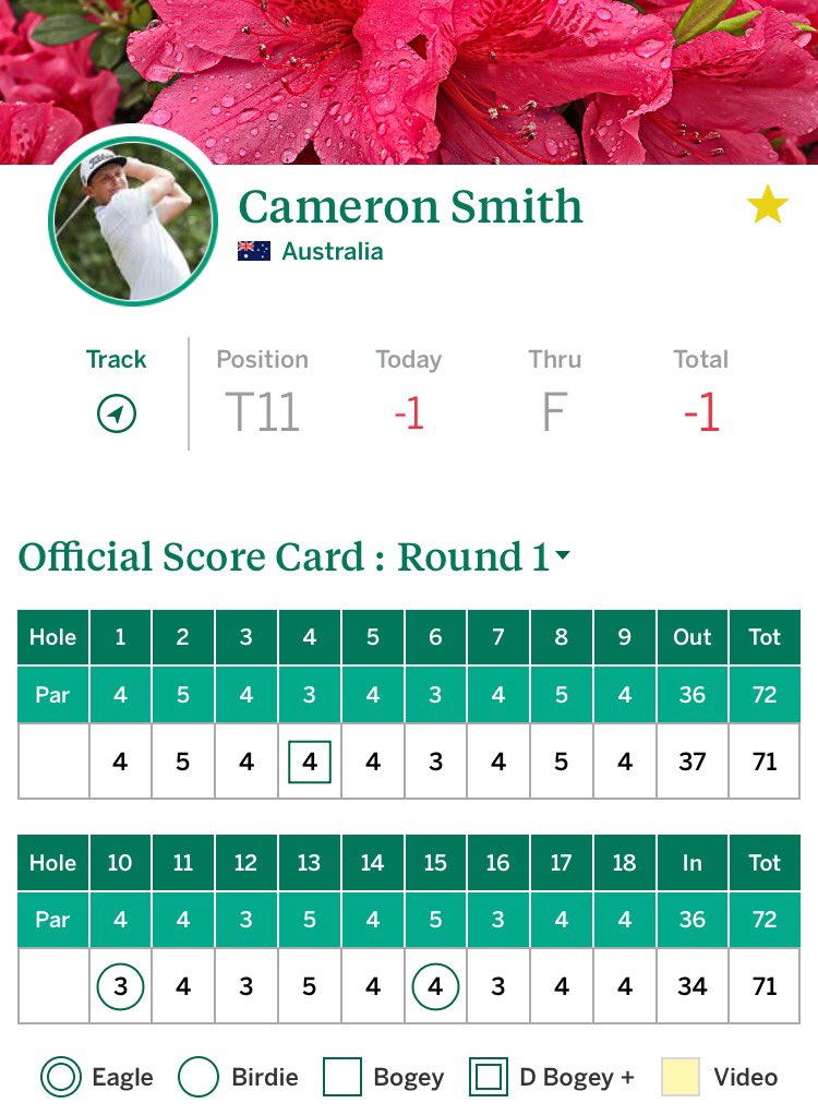 @camsmithgolf was one of only 20 players under-par on Thursday.#themasters