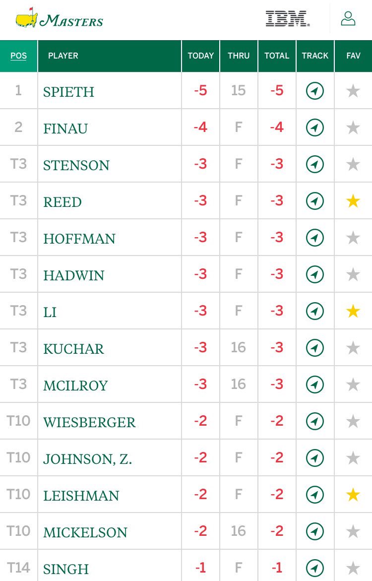 Three straight birdies and we have a very familiar name on top of the standings! #themasters