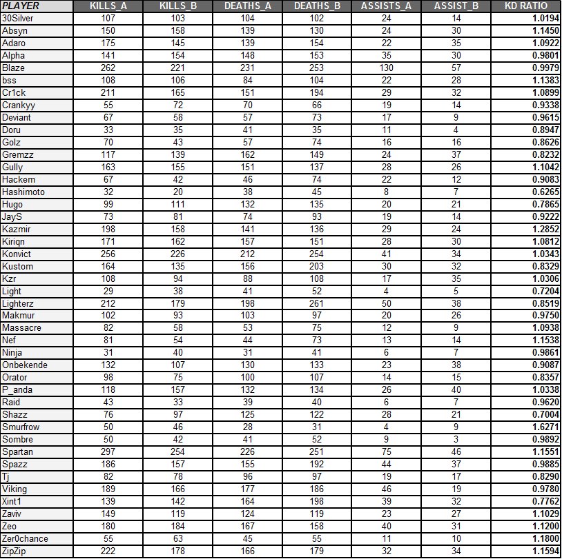 Here is an image of what the first leg of VS Gaming looked like for the players (sheet is WIP). Names are as per their VS Gaming name pic.twitter.com/iarfC4gmio