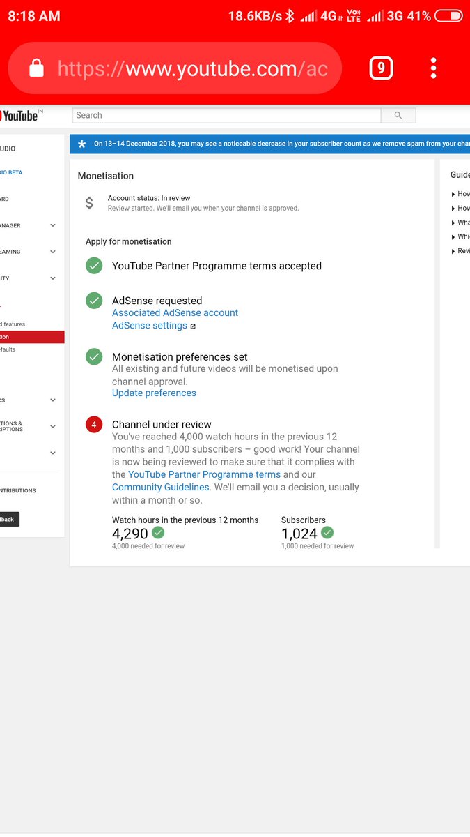 @TeamYouTube Dear Youtube My Channel 4k hours and 1k subscribers complet Please my channel monetization enable please YouTube My cannnel name : mgs tech My channel link : https://www.youtube.com/channel/UCO7LyidwzSRSC5N0vivNzjg … Thank you YouTube