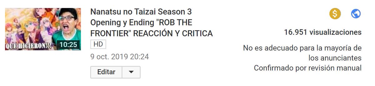 Es la culpa de Nanatsu no taizai, mejor sube boku no hero academia ya que ese anime casi nunca reclama por algo en youtube mañana nuevo episodio de la cuarta temporada ademas