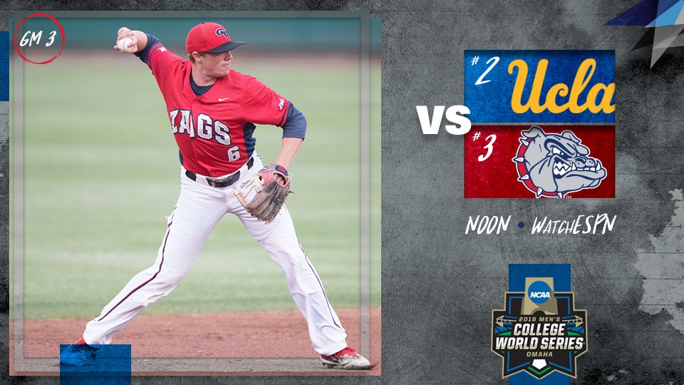 .@NCAACWS GAMEDAY! ⚾ @GonzagaBaseball vs. UCLA 🗺️ Minneapolis, MN ⏰ Noon 📈 http://on.ncaa.com/2kLJ8xS  💻 http://espn.com/watch pic.twitter.com/Lw1JJwNyrl