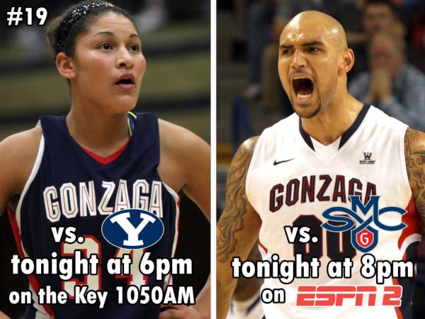 HUGE day for the Zags! #19 WBB vs. BYU at 6pm PT on BYU-TV or 1050AM & MBB hosts Saint Mary's at 8pm PT on ESPN2 #ZagUppic.twitter.com/c5hgsn4N
