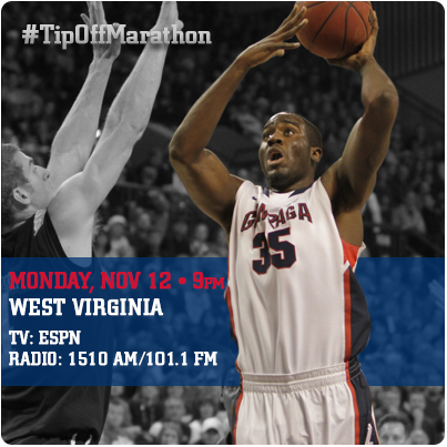 It's GAME DAY! @ZagMBB takes on WVU at 9pm in The Kennel in the first game of @ESPN's #TipOffMarathon #GoZags!pic.twitter.com/eLRagyyH