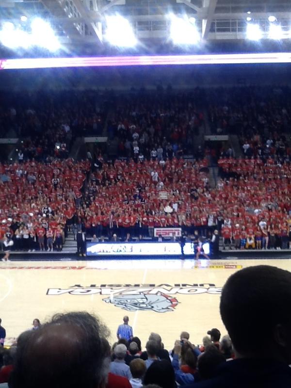 MBB: Tremendous showing by the students tonight who are still on break. Tip in minutes! #ZAGSMBBpic.twitter.com/m49LEY1k