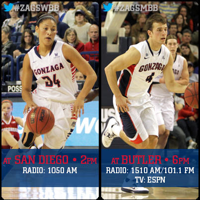 It's GAME DAY! @ZagWBB takes on San Diego at 2pm & #8 @ZagMBB faces #13 Butler at 6pm (PST) #GoZagspic.twitter.com/xbtINOSX