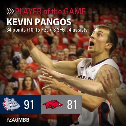 @GonzagaBulldogs: Career day 4 Kevin Pangos (34 pts) as@ZagMBB claim 5th place@EASPORTSMauiInv#ZAGMBB pic.twitter.com/j8gMSYrNAq 91-81#Zags