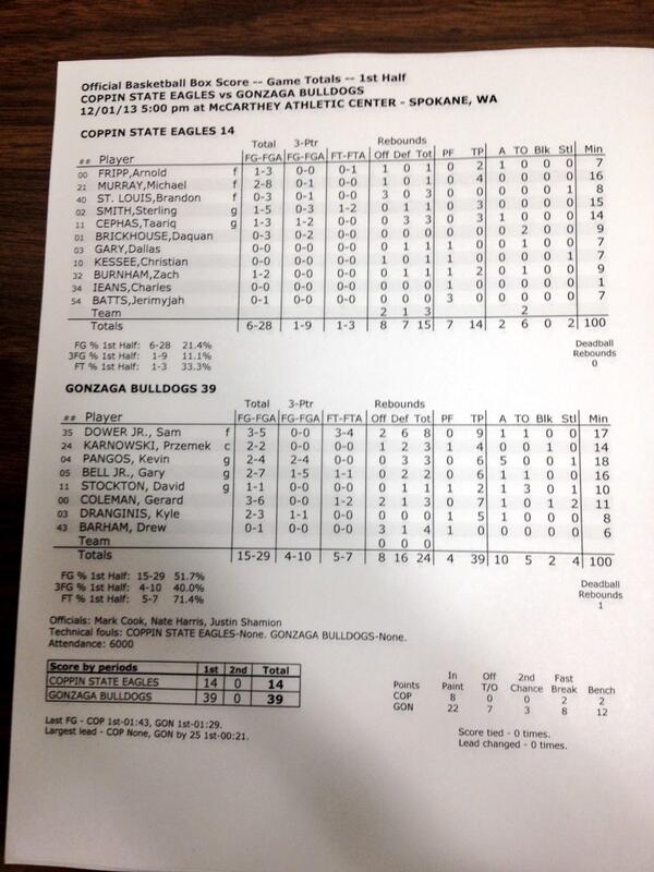 RT @GonzagaBulldogs: MBB | Bulldogs up 39-14 at half. Check out the 1st half box score: #ZAGMBBpic.twitter.com/9Xhfl0Er3g