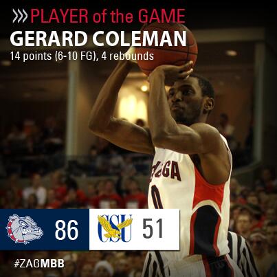 MBB | Coleman named Player of the Game after putting up 14 points & 4 rebounds! #ZAGMBBpic.twitter.com/K5oCD5h0II