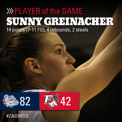 Sunny Greinacher's all-around game of 14pts, 4rbs, 2stls, 1a & 1blk helped lead @ZagWBB to 82-42 win.pic.twitter.com/JTtiRe9j7L